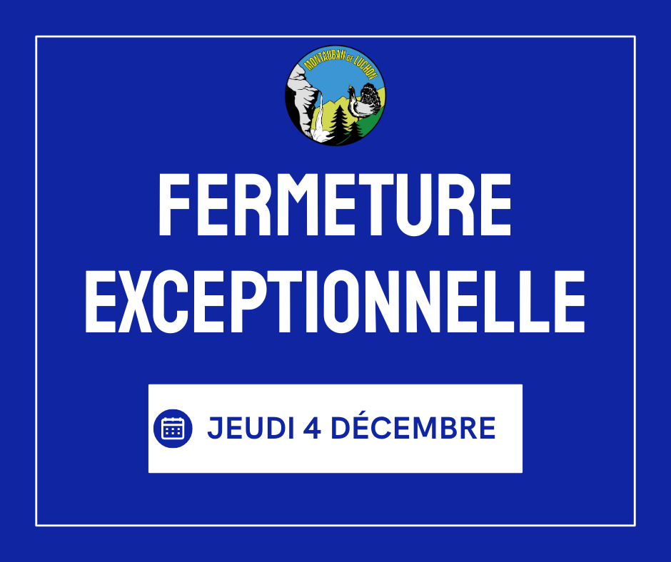Publié le 2 décembre 2025 par Muriel DEJOUS Pour cause de formation, le secrétariat sera exceptionnellement fermé le jeudi 4 décembre 2025. Merci pour votre compréhension.
